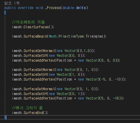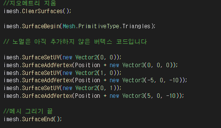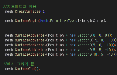 ClearsurFaces()를 사용하여 immediateMesh로 만든 메쉬를 사라지게 하여 초기화 하고
