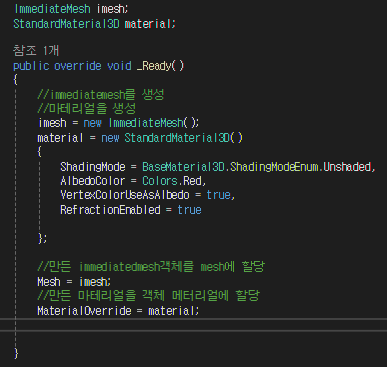 meshinstant3d 객체에 immediateMesh 객체를 넣어 사용합니다