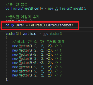 콜리전의 owner를 에디터씬루트로 해놔야합니다