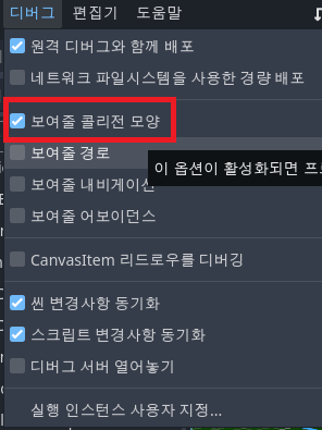 게임을 편집하는 에디터에서도 콜리전을 보고 싶다면