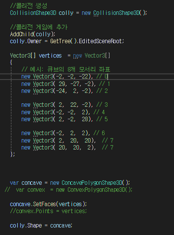 concave객체의 setFaces()함수를 사용하여 콜리전을 만듭니다