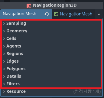 Navigation Region 인스펙터