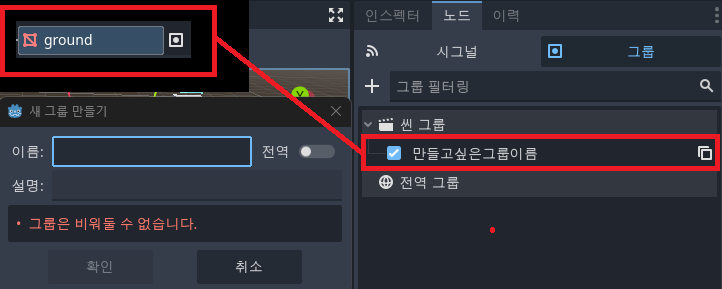 사용하고 싶은 노드를 그룹에 속하게 만든 후