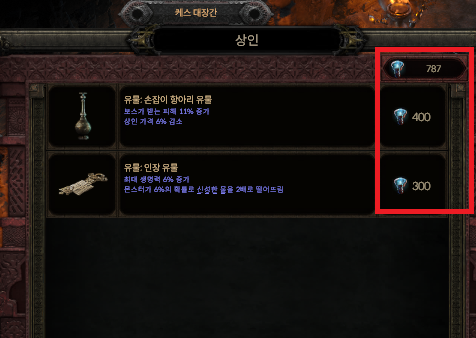 시련에서 사용하는 버프와 명예를 회복하기, 상점 이용 등을 사용할 수 있지만