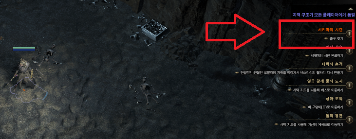 마을에 있는 맵 이동 기능을 보면 시케마의 시련이라는 지역으로 이동할 수 있게 됩니다