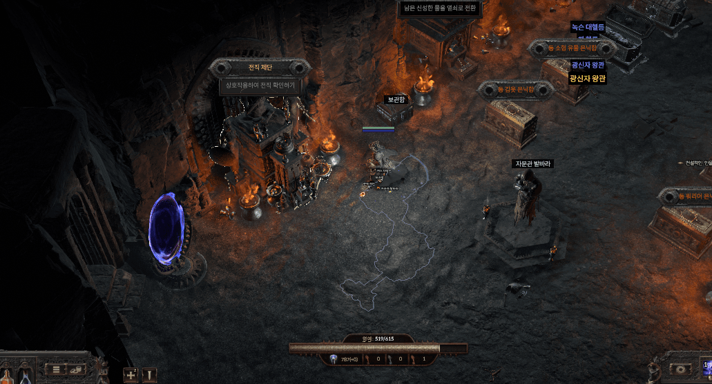 전직 제단을 클릭 후 직업을 선택한 후에 전직을 누르면 전직이 완료된다